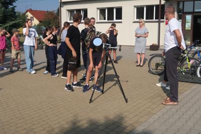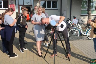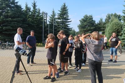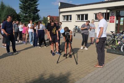 18 września 2023r. w naszej szkole odbył się niezwykle ciekawy wykład „O obserwacjach lornetkowych letniego nieba oraz o rozwoju optyki astronomicznej od czasów Galileusza”, który poprowadził Pan Marcin Górka. Początkowo uczniowie obserwowali słońce przez specjalną lunetę, a następnie Pan Marcin przekazał w interesujący sposób informacje dotyczące obserwacji nieba.