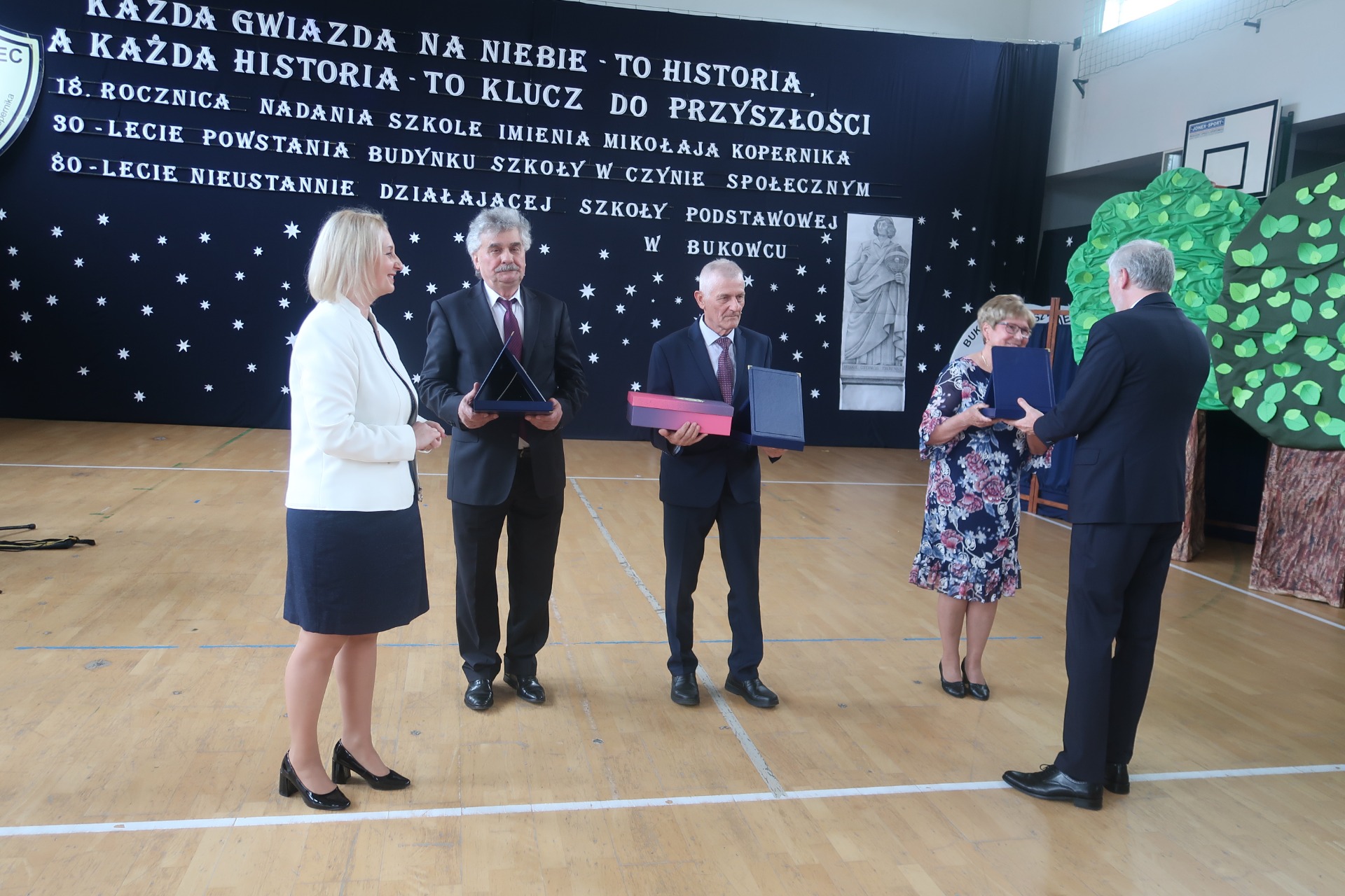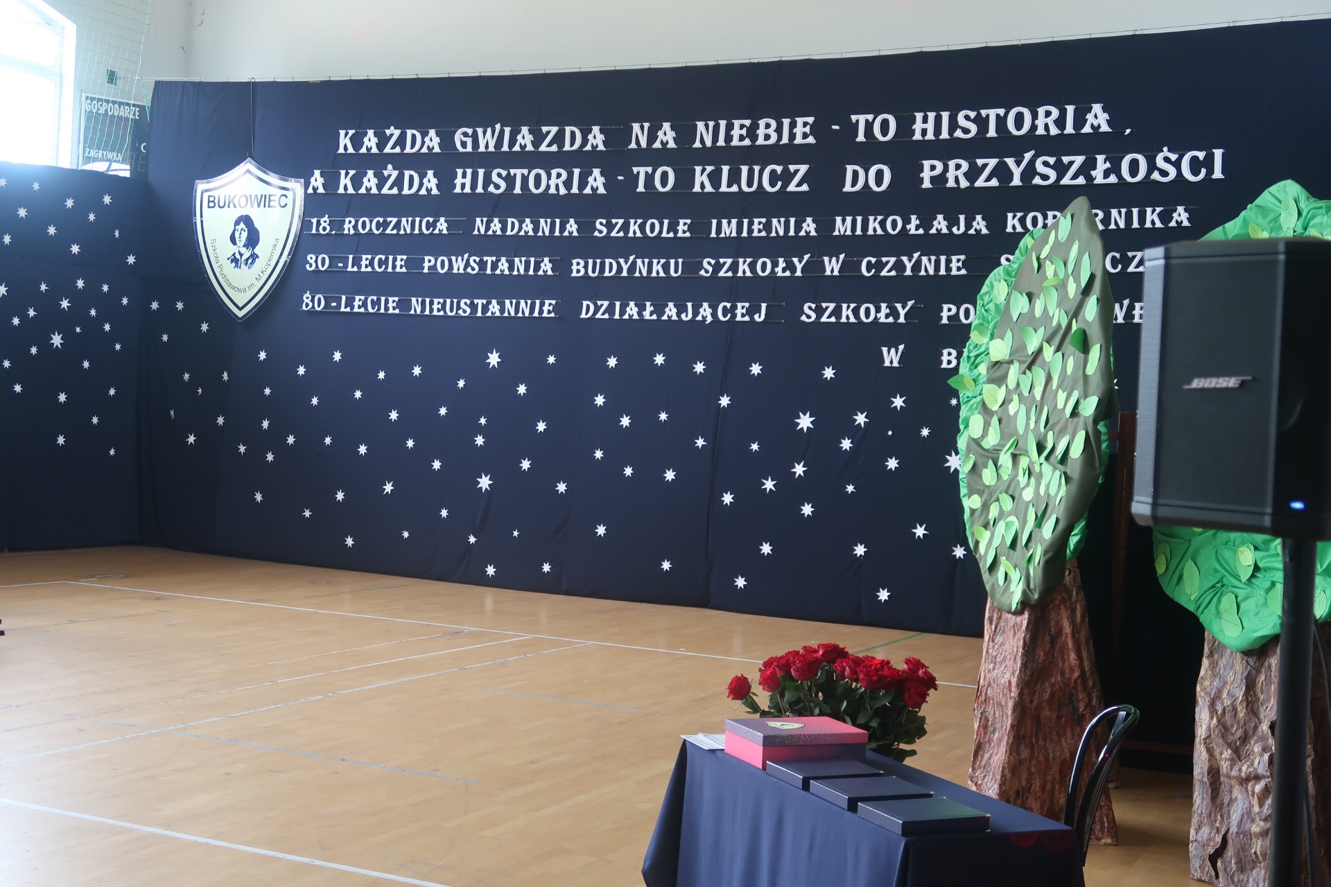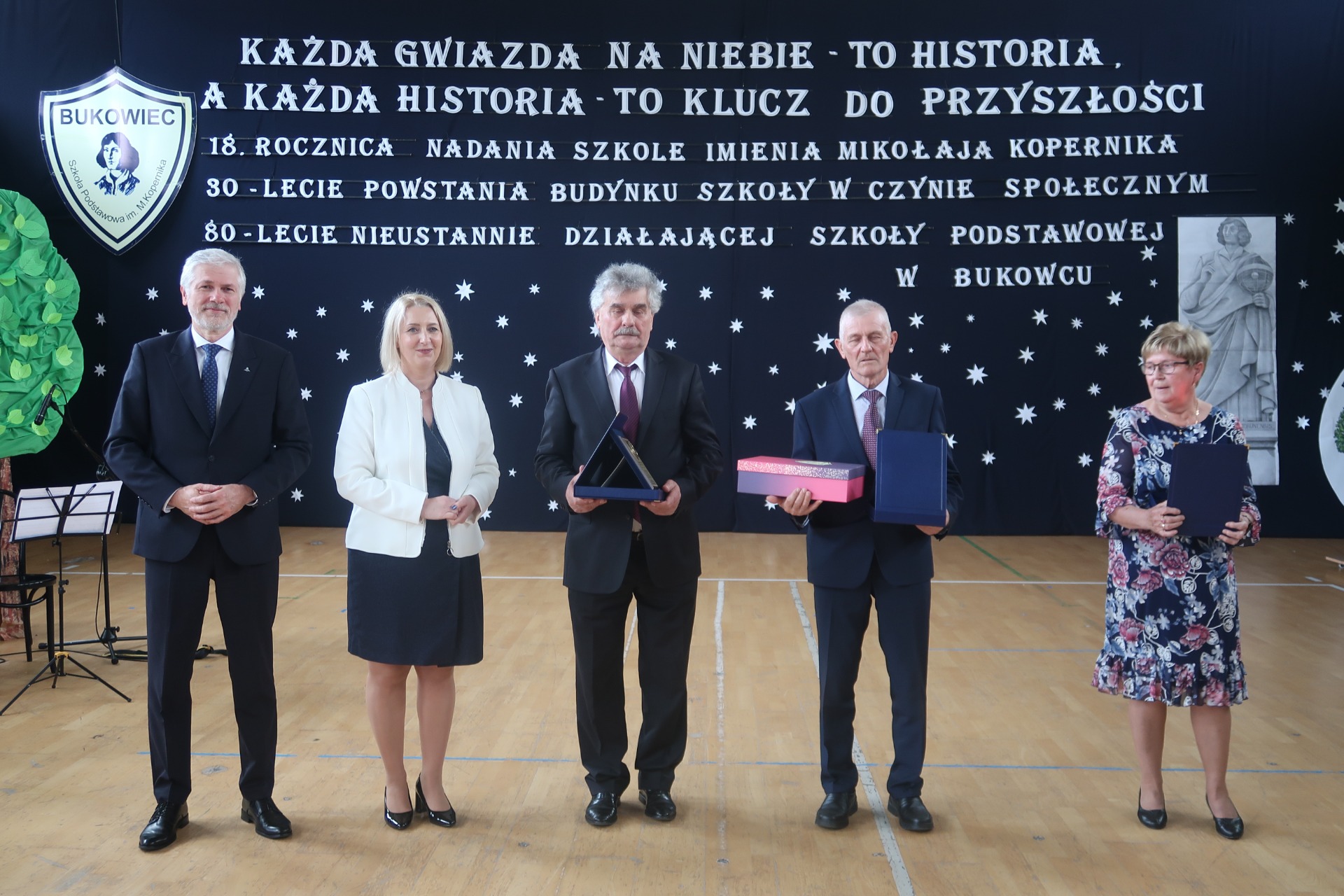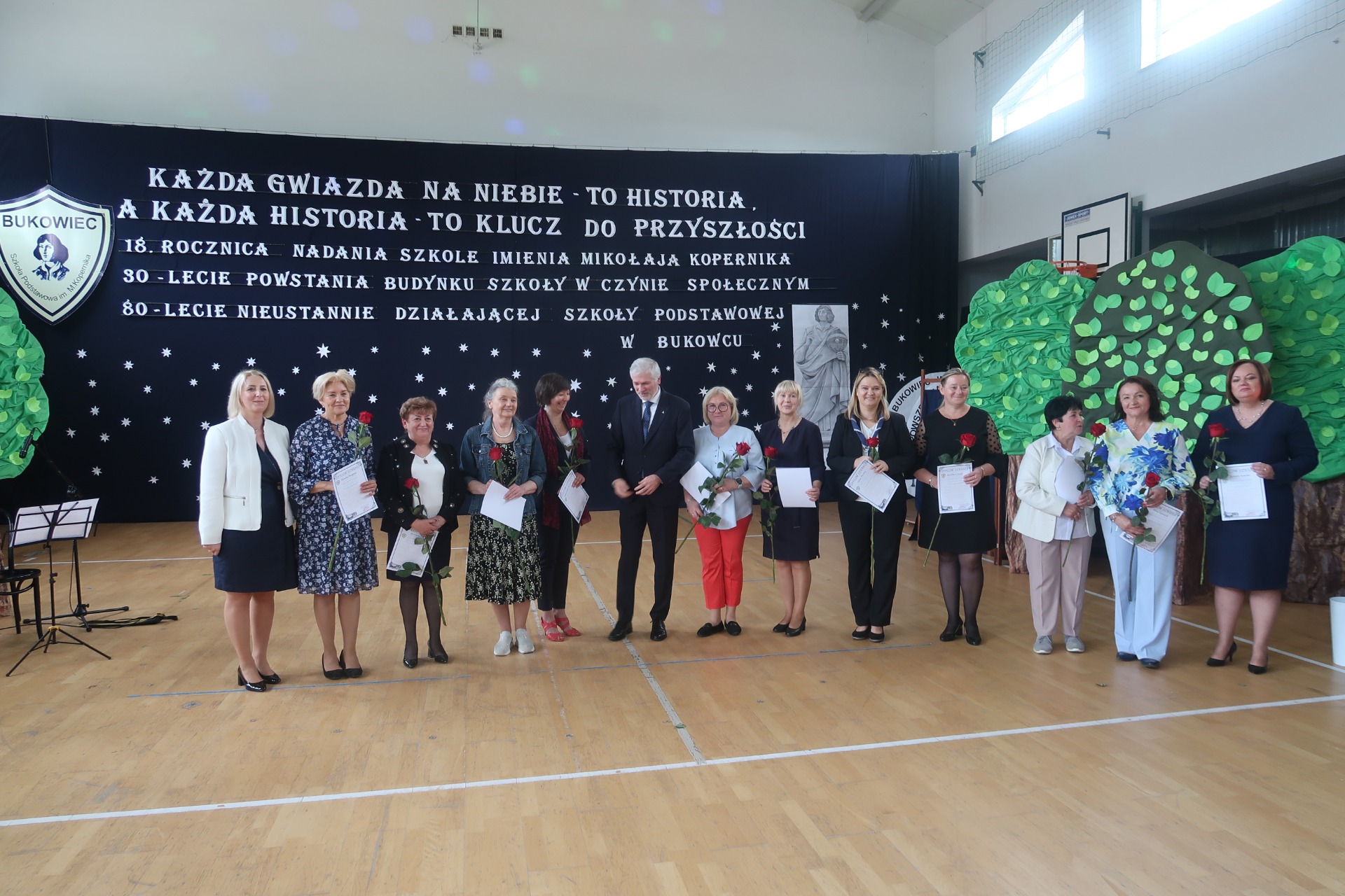 18 ROCZNICA NADANIA SZKOLE IMIENIA MIKOŁAJA KOPERNIKA 30 LECIE POWSTANIA BUDYNKU SZKOŁY W CZYNIE SPOŁECZNYM 80 LECIE NIEUSTANNIE DZIAŁAJĄCEJ SZKOŁY PODSTAWOWEJ W BUKOWCU
