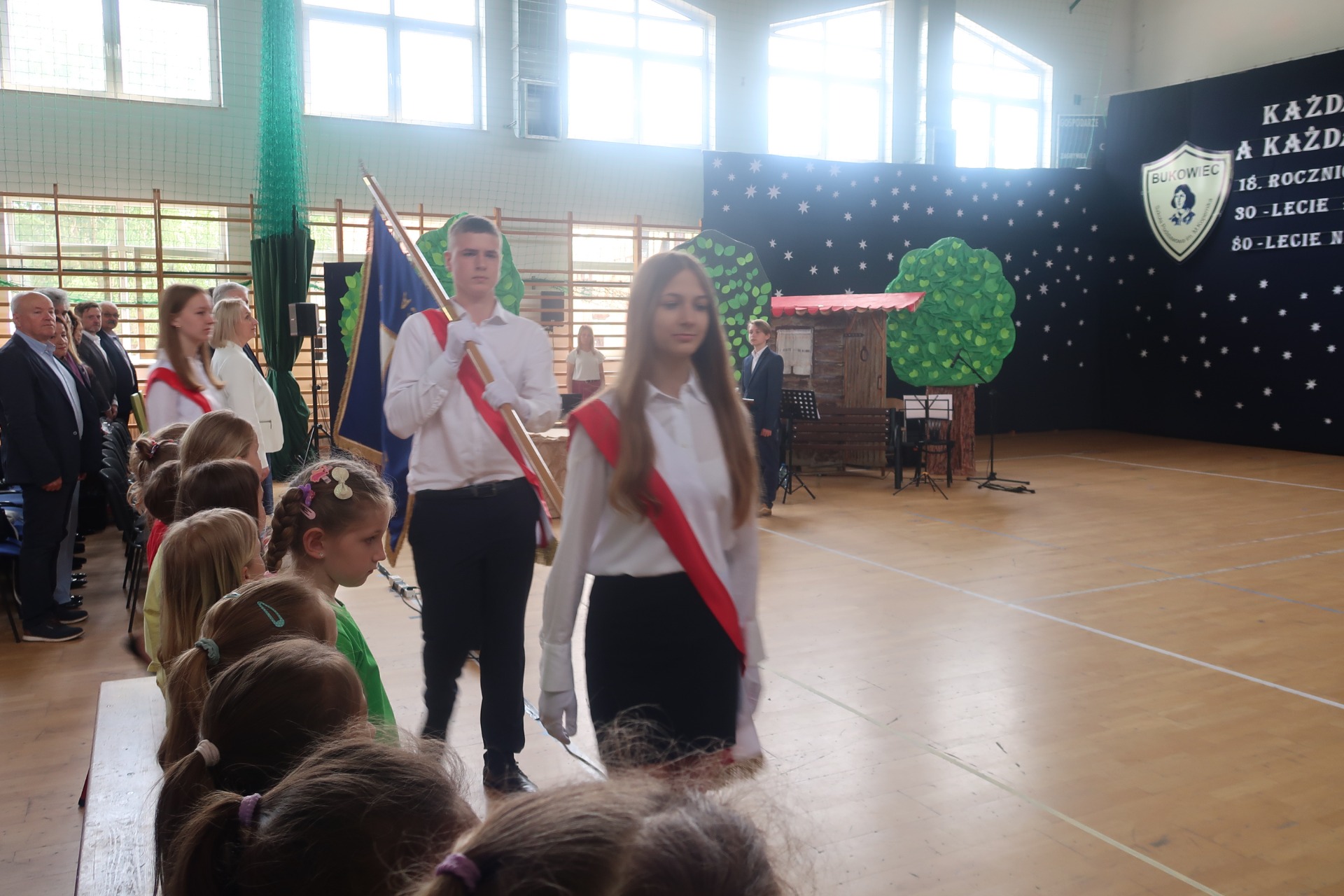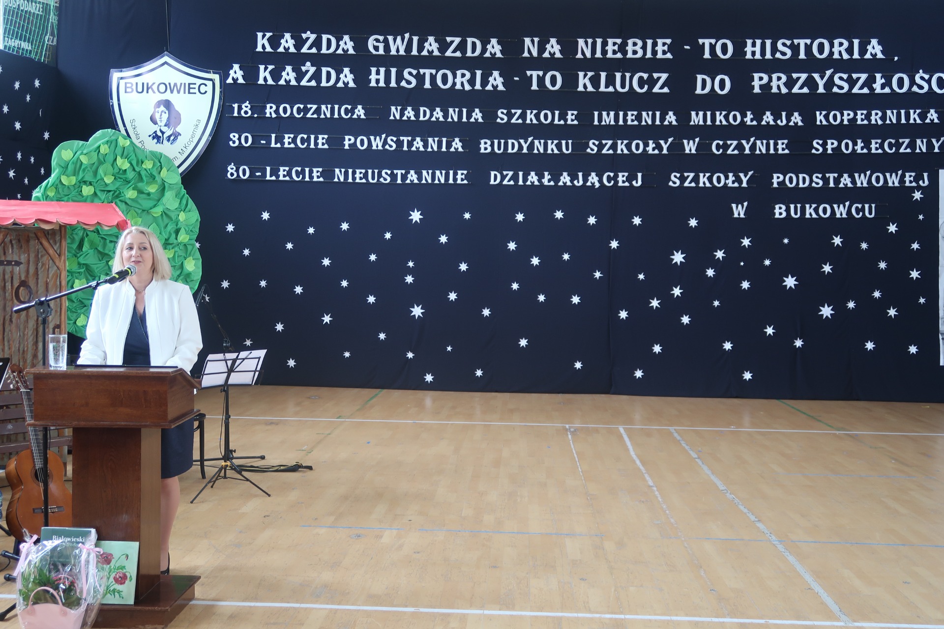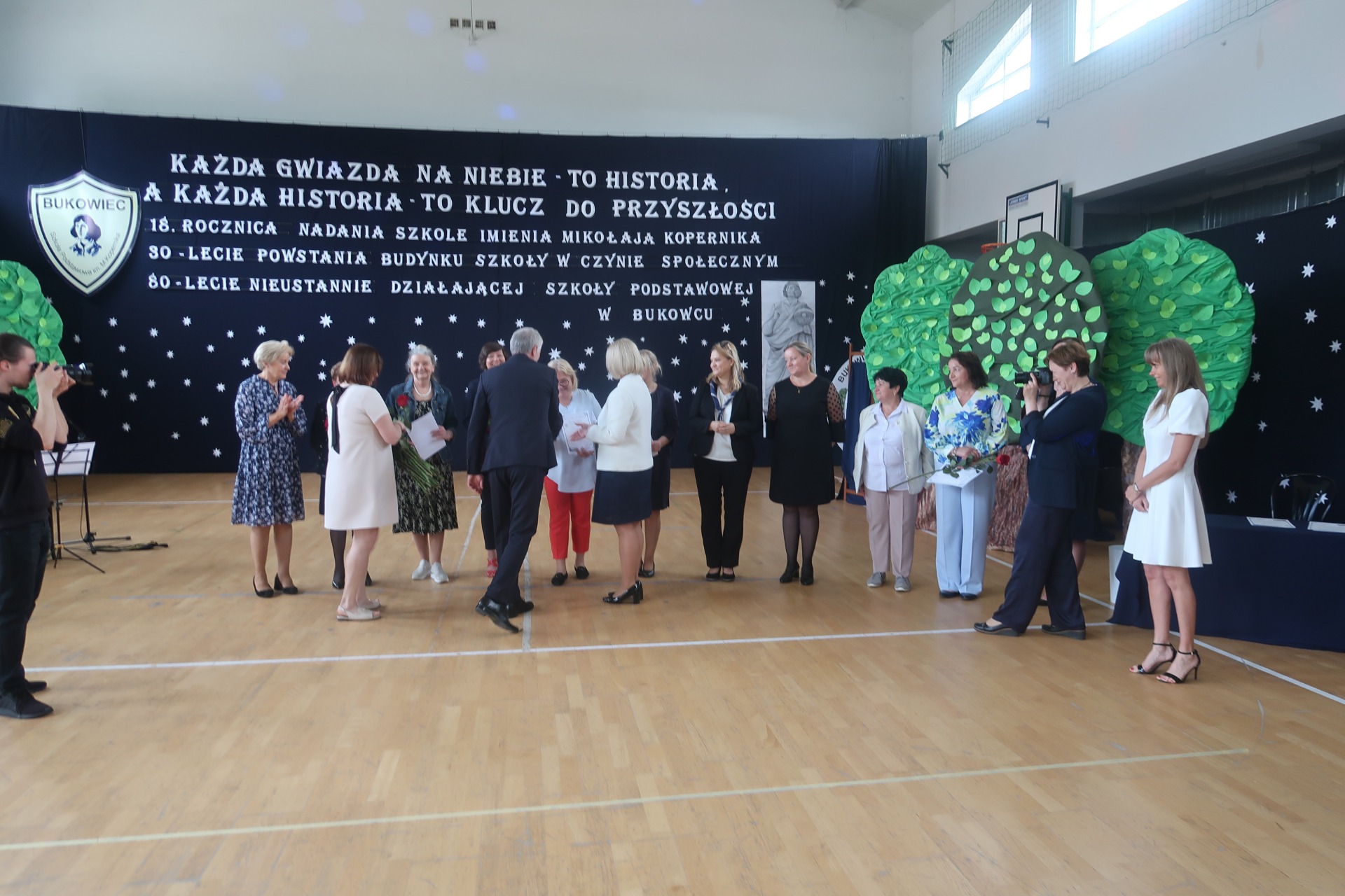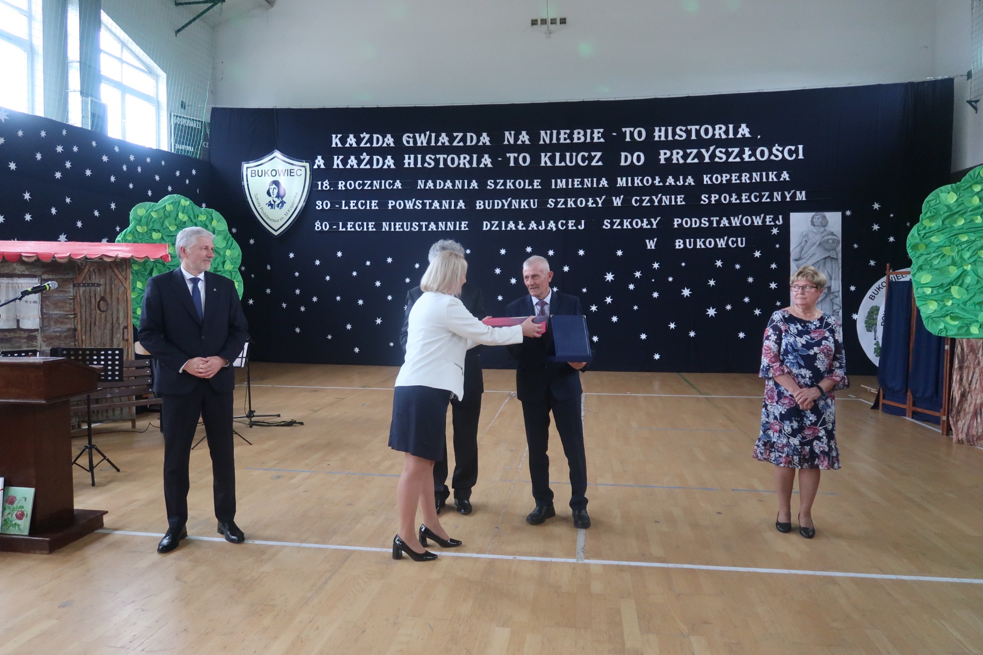 18 ROCZNICA NADANIA SZKOLE IMIENIA MIKOŁAJA KOPERNIKA 30 LECIE POWSTANIA BUDYNKU SZKOŁY W CZYNIE SPOŁECZNYM 80 LECIE NIEUSTANNIE DZIAŁAJĄCEJ SZKOŁY PODSTAWOWEJ W BUKOWCU