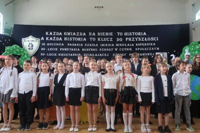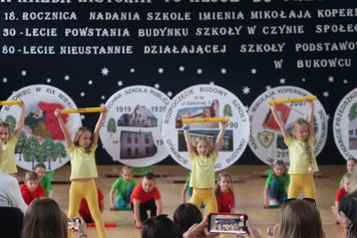 JUBILEUSZE SZKOŁY 18 ROCZNICA NADANIA SZKOLE IMIENIA MIKOŁAJA KOPERNIKA 30 LECIE POWSTANIA BUDYNKU SZKOŁY W CZYNIE SPOŁECZNYM 80 LECIE NIEUSTANNIE DZIAŁAJĄCEJ SZKOŁY PODSTAWOWEJ W BUKOWCU