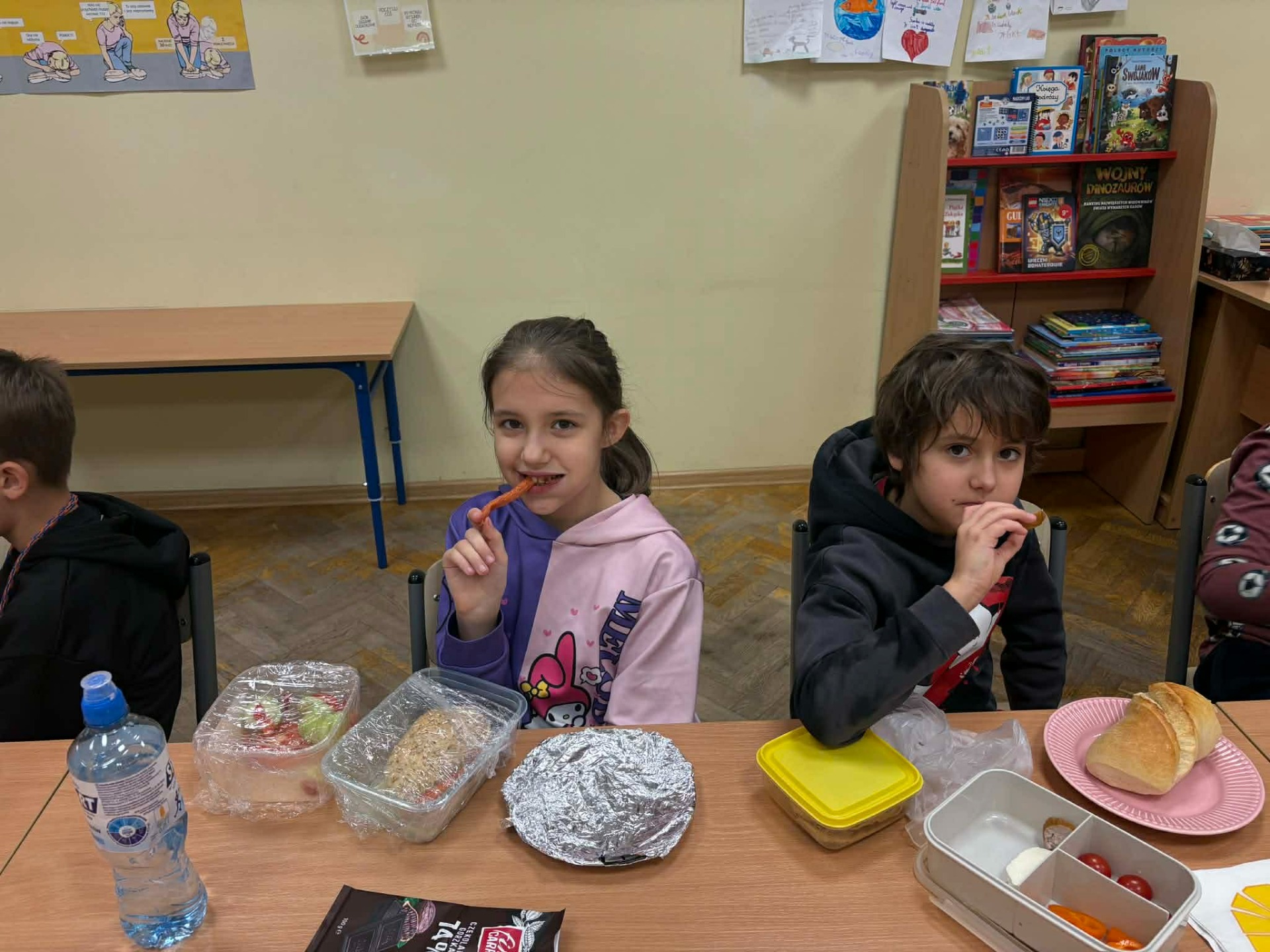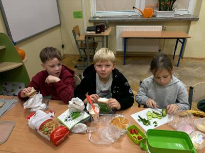 Klasa 3a uczestniczyła w niezwykle ciekawych warsztatach dotyczących piramidy zdrowego żywienia, które przeprowadziła mama naszego ucznia — pani dr Magda Grodzka. Po zdobyciu solidnej dawki wiedzy o zdrowych nawykach żywieniowych wspólnie zasiedliśmy do zdrowego śniadania w ramach ogólnopolskiej akcji „Śniadanie daje nam moc” 🥗🍎✨