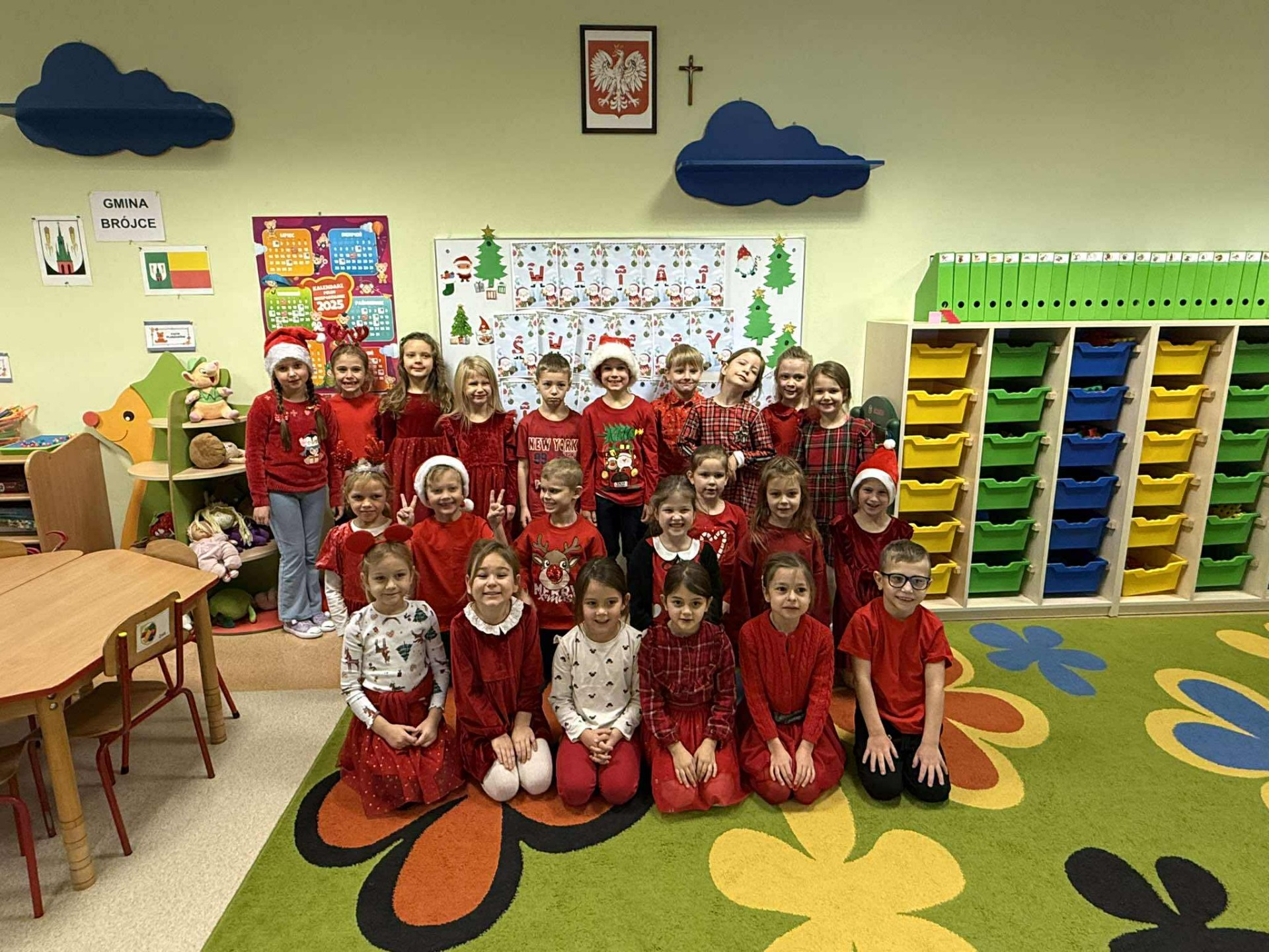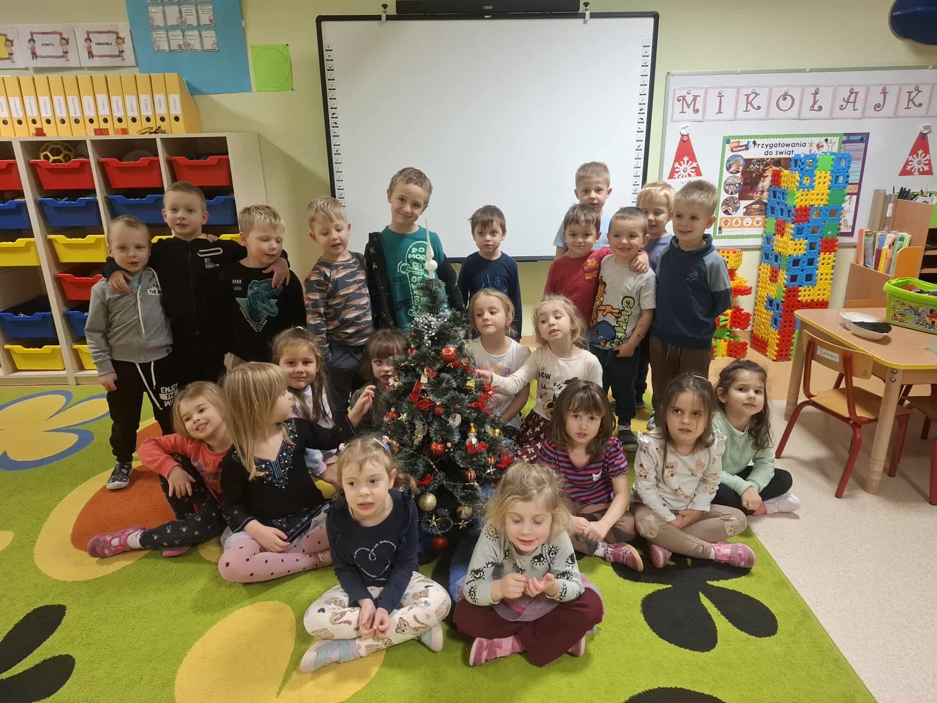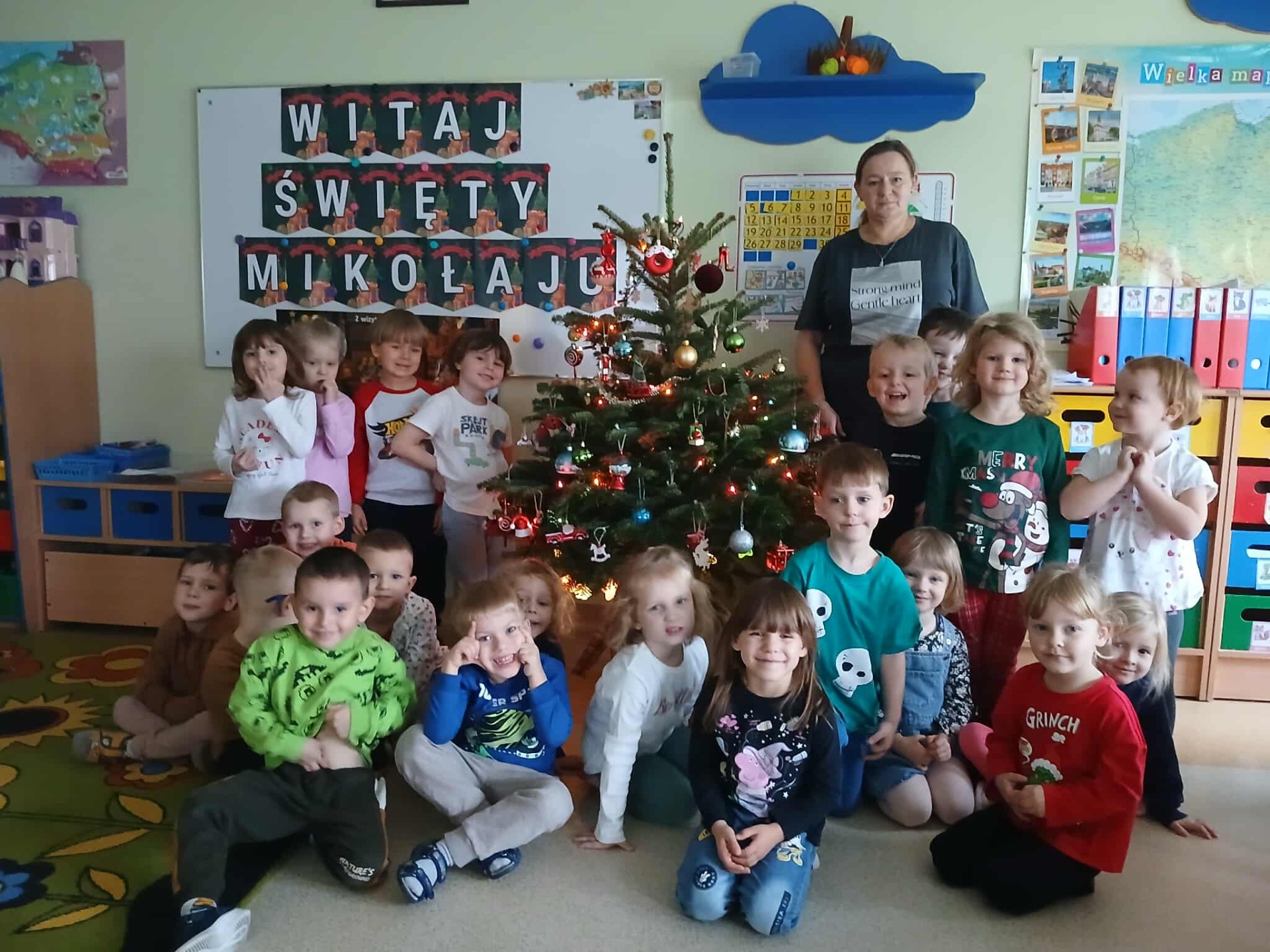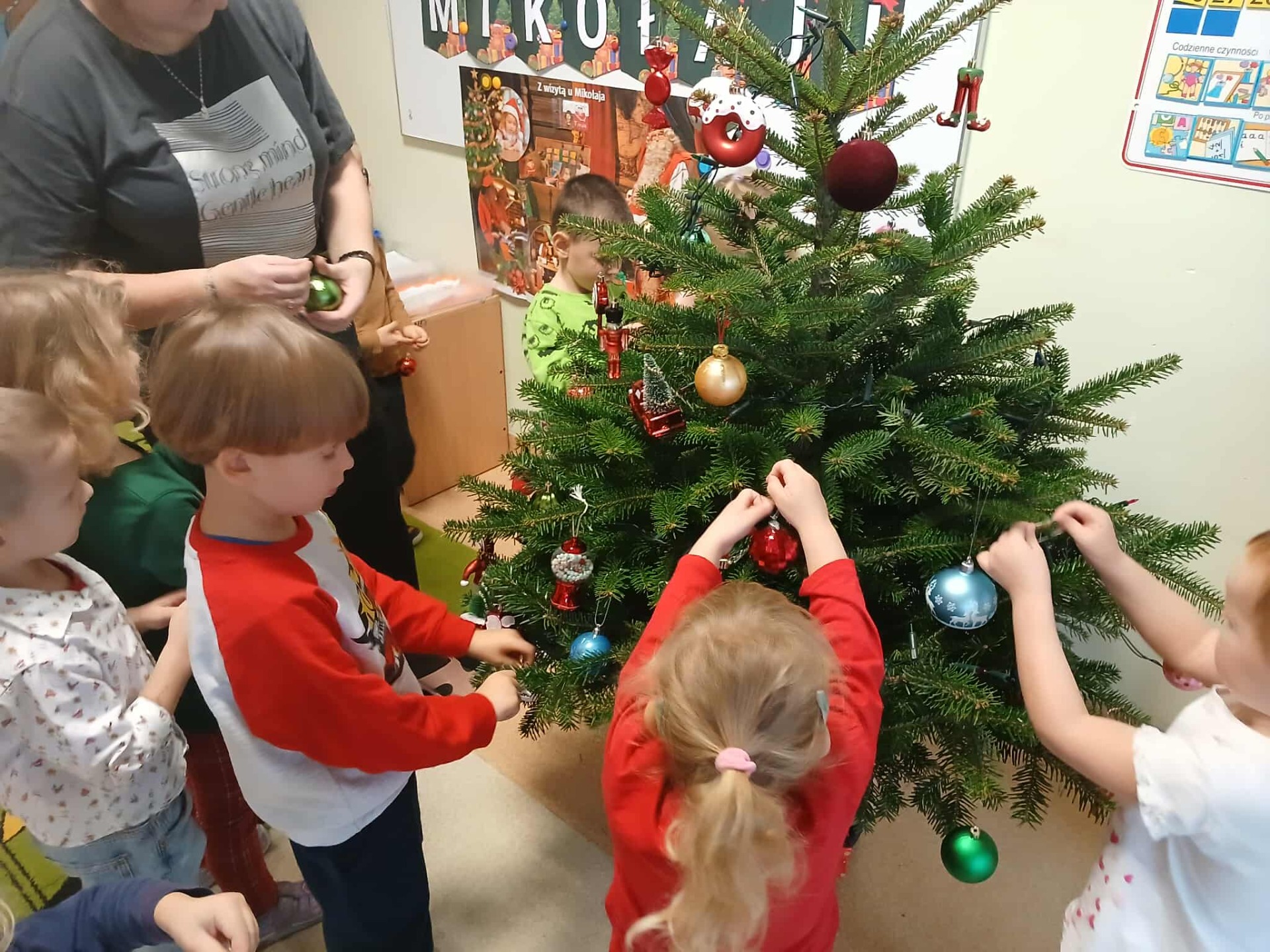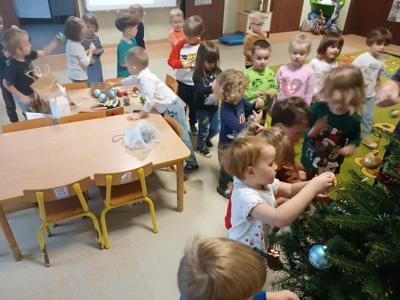 Jak co roku w okresie świątecznym wesoło spędzają czas nasze Przedszkolaki. W każdej sali lśni pięknie ozdobiona przez Dzieci choinka. Wszystkie przedszkolaki odwiedził Święty Mikołaj. Tradycyjnie wszystkie grupy przygotowały także świąteczne występy dla swoich bliskich.